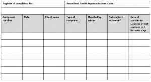 We will record information in the following tabular form, this is held within our directory: National Consumer Credit Protection\Internal Dispute Resolution